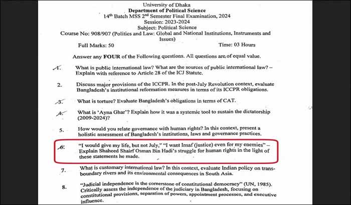 ঢাবির পরীক্ষায় ওসমান হাদিকে নিয়ে প্রশ্ন
