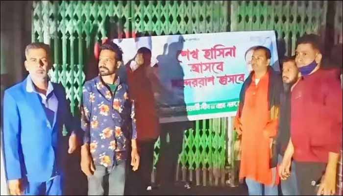 টাঙ্গাইলে আওয়ামী লীগের কার্যালয়ের সামনে দলীয় ও জাতীয় পতাকা...